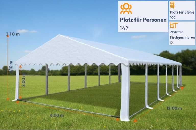 Mieten Sie das Festzelt 6x12m Giant Pro PVC FR mit Fenster und machen Sie Ihre Veranstaltung zu einem unvergesslichen Erlebnis! Ideal für jede Art von Feier – von Gartenpartys über Hochzeiten bis hin zu Vereinsfesten. Kontaktieren Sie uns noch heute, um Ihr Zelt zu reservieren und genießen Sie die Vorteile eines sicheren, stabilen und stilvollen Festzeltes!