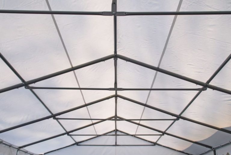 Mit einem beeindruckenden Rohrdurchmesser von 50 mm und einem integrierten Bodenrahmen bietet dieses Zelt eine unvergleichliche Stabilität. Das rasterfaserverstärkte 550 g/m² Professional FR PVC Material sorgt nicht nur für Langlebigkeit, sondern ist auch feuersicher zertifiziert. Dank der zusätzlichen Dachverstrebungen bleibt das Zelt selbst bei widrigen Wetterbedingungen stabil und sicher.