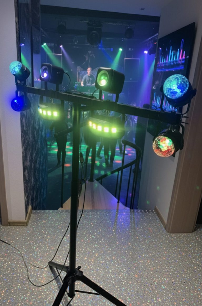 Entdecken Sie unsere vielseitigen Partybeleuchtungsständer, ausgestattet mit lebhaften Diskolichtern, strahlenden Strobospots und faszinierenden Laserstrahlen. Jedes Bühnenstativ lässt sich bequem bis auf 180 cm ausziehen. Mieten Sie die Stative und die Beleuchtung für nur 35,- Euro pro Veranstaltung!