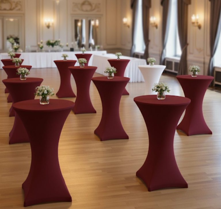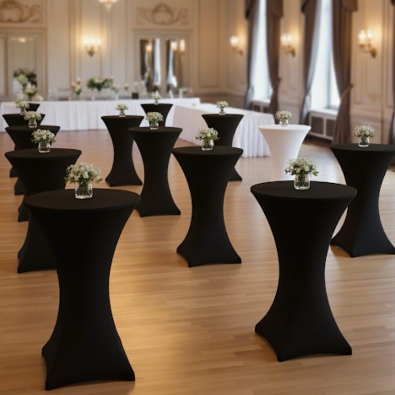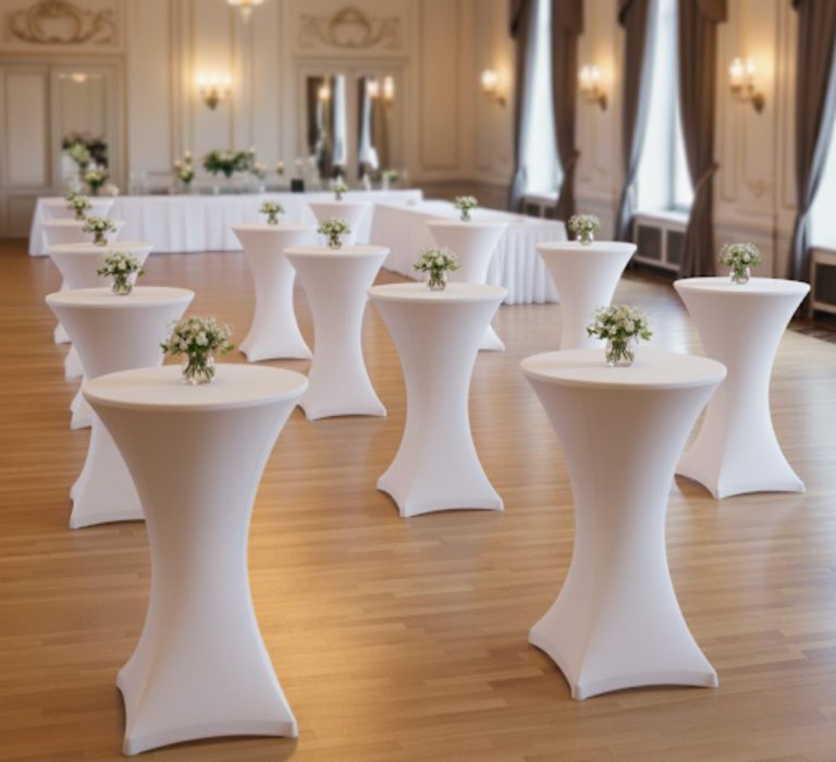 Bei uns erhalten Sie zu jedem gemieteten Stehtisch eine Tischhusse in der von Ihnen gewünschten Farbe – und das ohne zusätzliche Kosten!