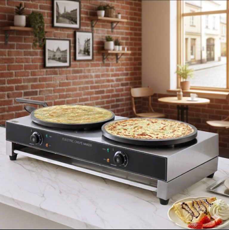 Schnelle Zubereitung: Dank der zwei Platten können Sie mehrere Crepes gleichzeitig herstellen, was besonders in Zeiten hoher Nachfrage von Vorteil ist.